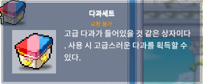 - [이벤트] 알파벳 모으기 이벤트 참여 후 획득한 한과 세트를 NPC 달리어에게 가져다주면 이벤트가 완료됩니다.