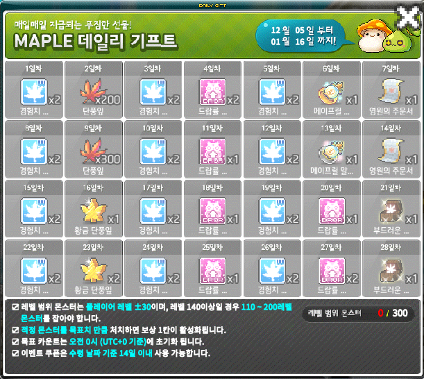- 우리들의 단풍잎 이야기 퀘스트는 매일 오전 9시를 기준으로 초기화됩니다.