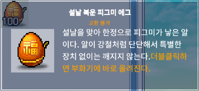 - 신규 캐시 아이템 출시: 설날 복운 부화기