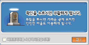 일반 사냥터에서 사망할 경우, 부활 확인창에서 버프 프리저 사용 여부를 직접 선택하여 전략적으로 사용할 수 있습니다.