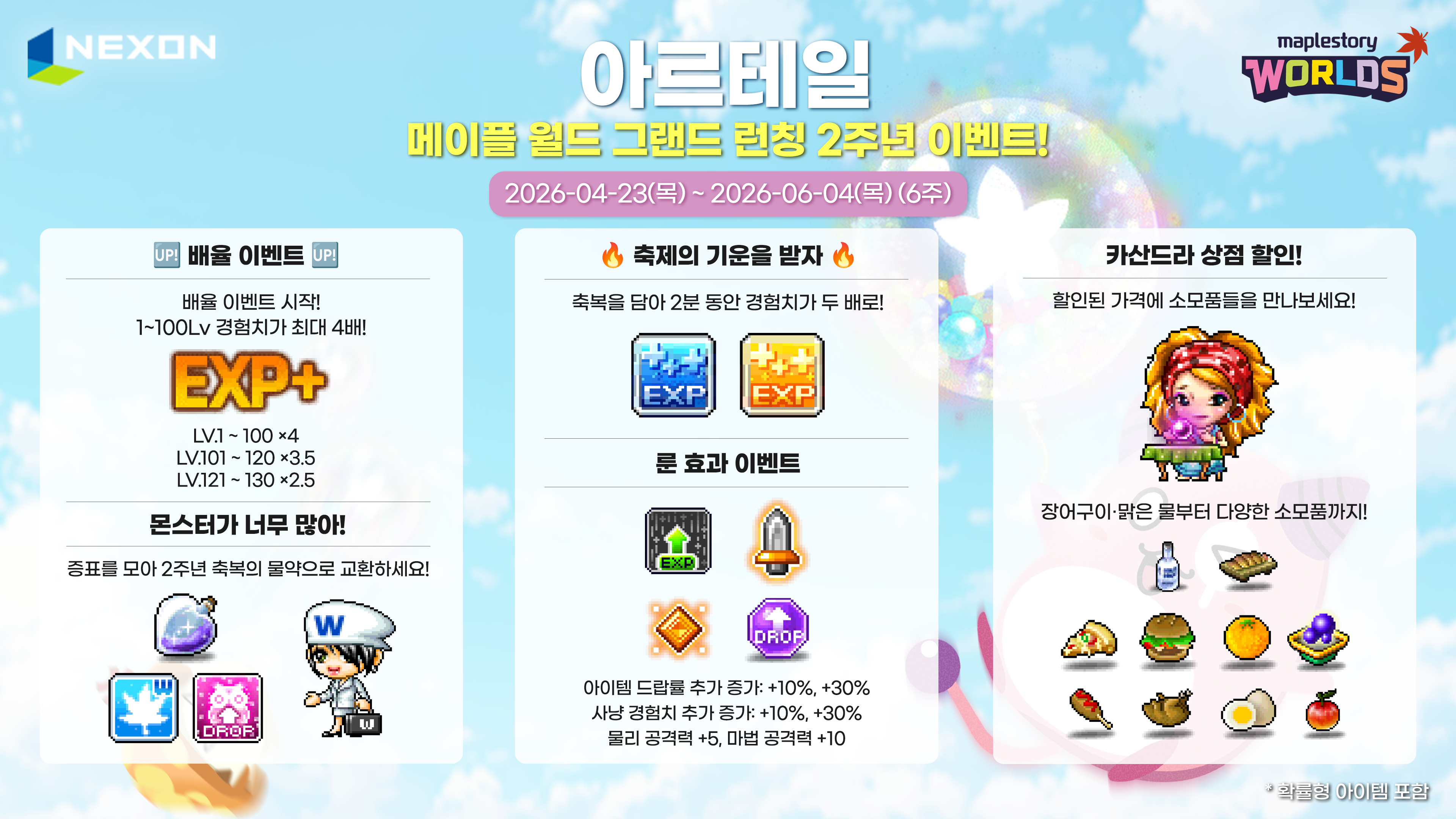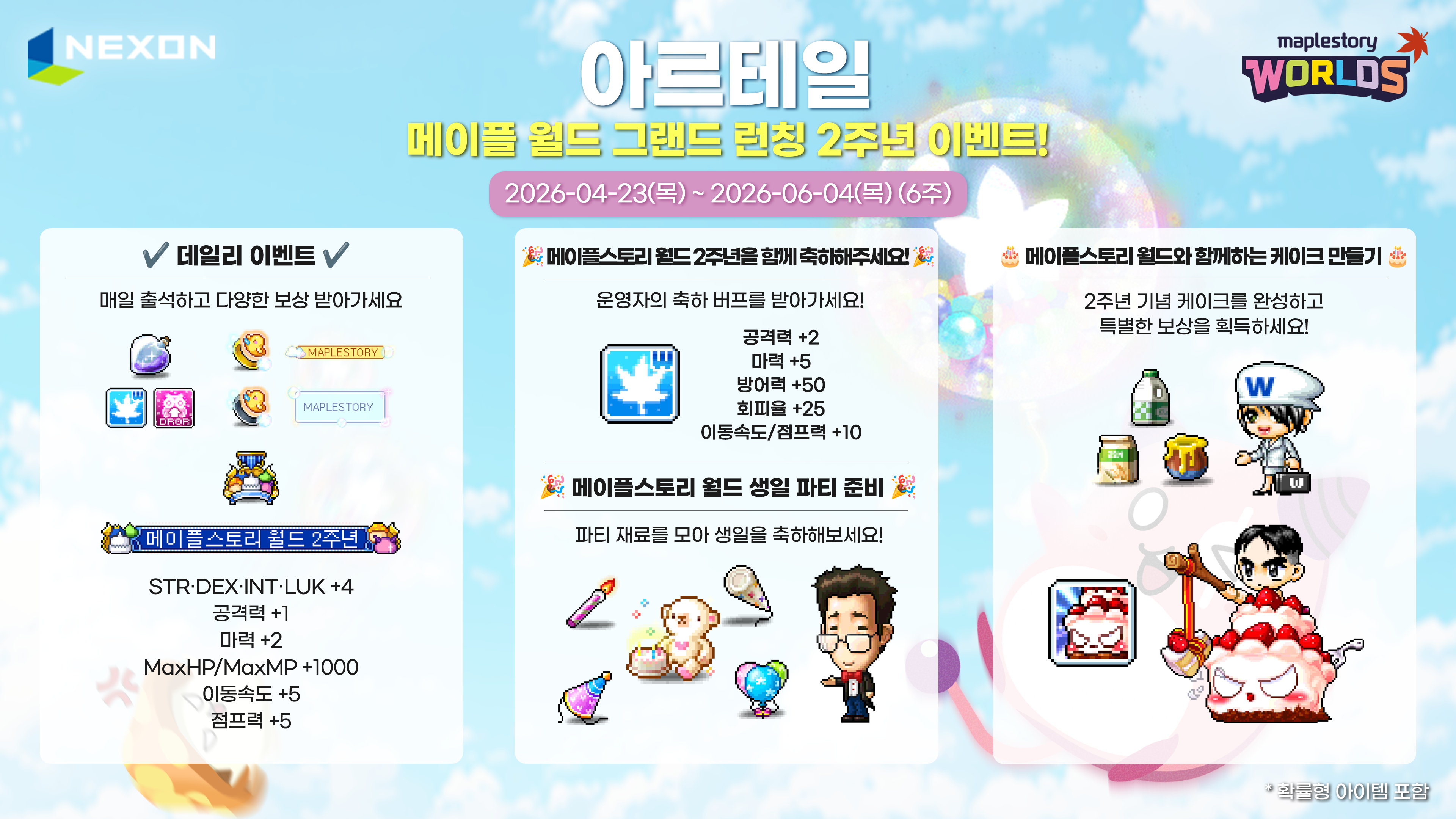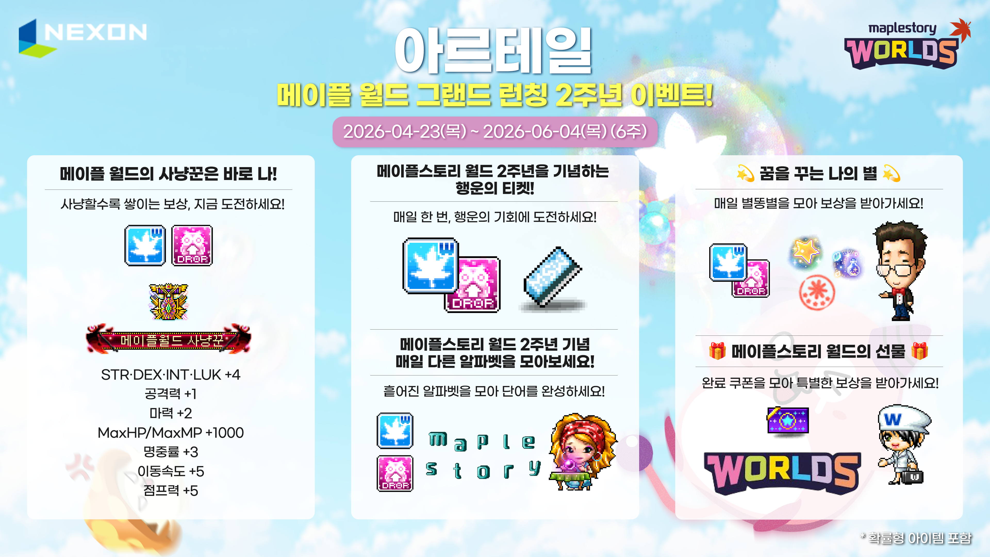 4/23(목) 아르테일 ‘메이플스토리 월드 그랜드 런칭 2주년 이벤트’ 이벤트 패치 노트