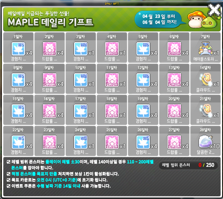 2단계50개• 경험치 2배 쿠폰(30분) 2개