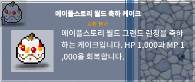 • ‘메이플스토리 축하 케이크’는 교환 불가하며, 운영진 선정 보상은 교환 가능합니다.