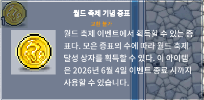 • 월드 축제 기념 증표 1개