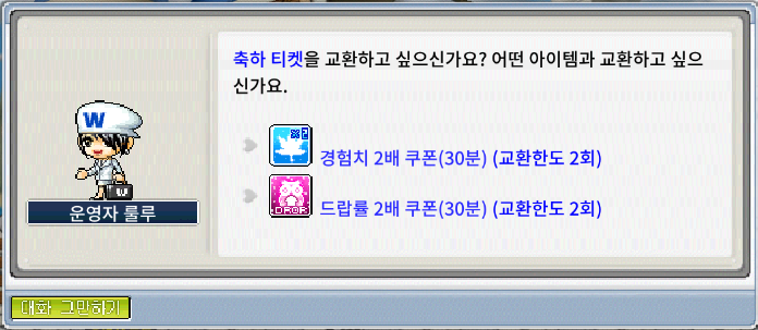 • 드랍률 2배 쿠폰(30분) 1개