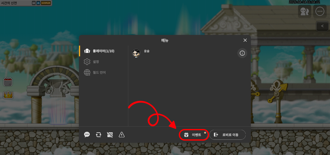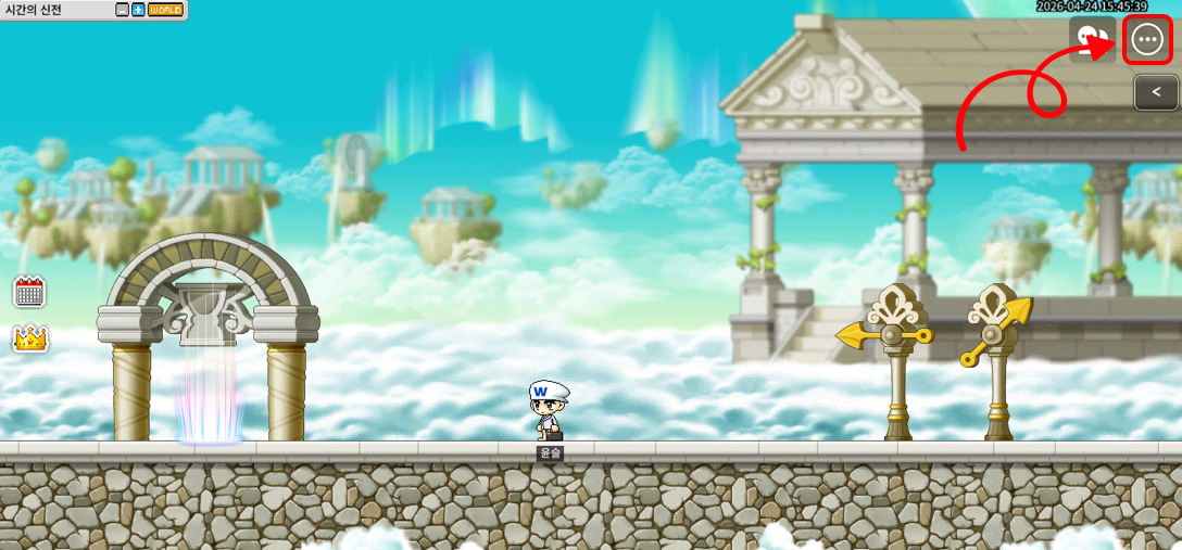 1. 게임 화면 오른쪽 상단에 있는 메이플스토리 월드 메뉴(아이콘)를 클릭해 주세요.