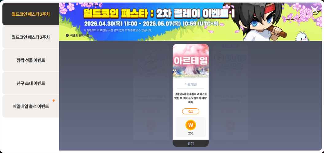 4/30(목) 아르테일 ‘메이플스토리 월드와 함께하는 월드 코인 페스타’ 이벤트 패치 노트